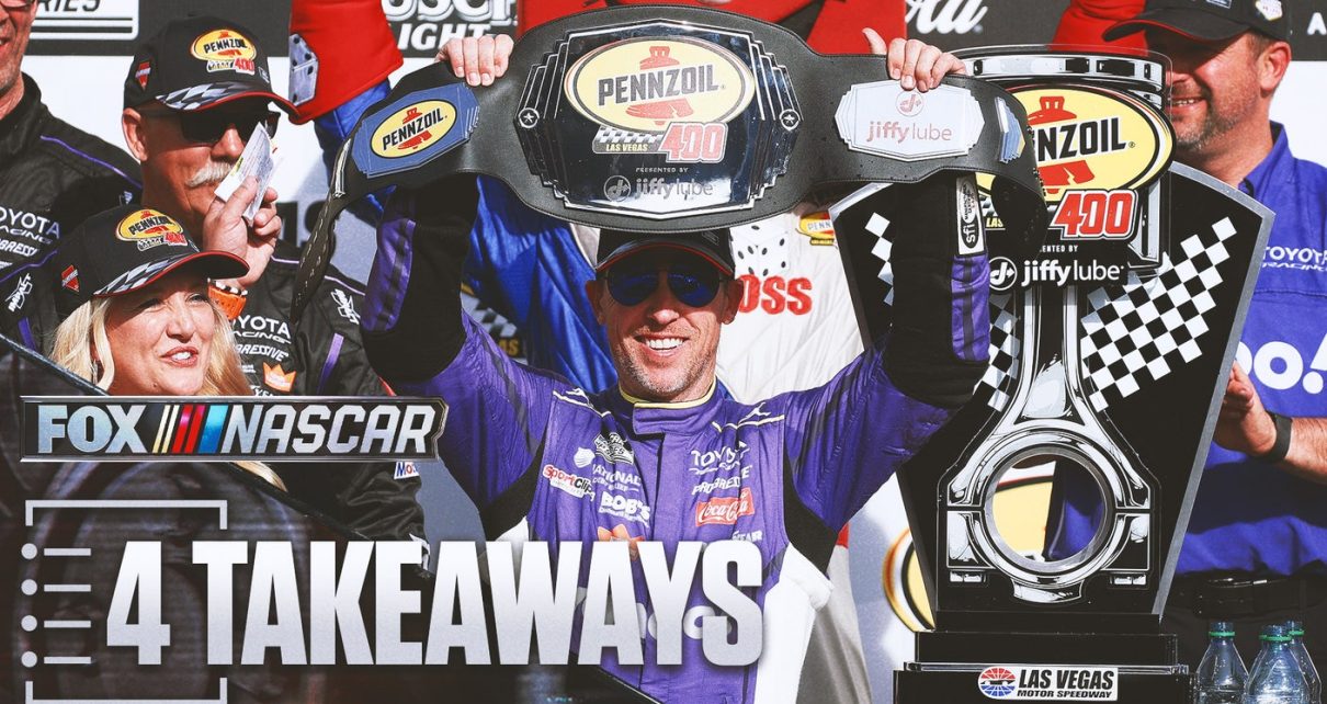 Denny Hamlin needed to rally last fall to win at Las Vegas Motor Speedway. So having to rally again was no problem Sunday, especially with what appeared to be a more dominant car. Hamlin overcame a speeding penalty to lead 134 of the 267 laps to capture his second consecutive victory at the track and 61st in his career. Here are my takeaways: 1. Hamlin’s Record Book The victory put Hamlin in sole possession of 10th on the all-time victory list, as he previously was tied with FOX Sports analyst Kevin Harvick. “I feel very fortunate to be on the list,” Hamlin said in his FS1 interview after the race. “Those guys [ahead of me] were far more talented than I have ever thought about being. I just work really hard. “I still to this day work really hard at my craft to try to continue to get better.” Hamlin does have talent, but his work ethic is evident by the fact that most drivers seem to fall off after they turn 40. Hamlin is still going strong at age 45. 2. Good Hendrick Day Hendrick Motorsports put three drivers in the top seven, with Chase Elliott (second), William Byron (third) and Kyle Larson (seventh). Elliott had the typical reaction of a driver who came close but ran out of time to catch the leader. “As bummed as I am to come up that close to a win, I have to kind of bring myself back to a reality check [of] how much better we ran today than we’ve been running,” Elliott said in his FS1 interview. 3. But Not-So-Good Rest Of Chevy Chevrolet debuted a new body style this year, and this race on a traditional 1.5-mile track was supposed to tell something about whether it was an improvement. It seems like it is OK for Hendrick but not for the rest of the Chevrolets. Austin Dillon was the best non-Hendrick Chevrolet in 12th. Ross Chastain and Daniel Suarez battled for 17th and then argued about it afterward. The highest non-Hendrick Chevrolet driver in the standings is Spire’s Michael McDowell, who, in 14th, is just five points above the current playoff cutoff. 4. Speedy Briscoe Chase Briscoe was among the Joe Gibbs Racing drivers who got speeding penalties. Three of the four (Briscoe, Hamlin and Ty Gibbs) got them. But he had already felt the wrath of going too fast before the race as he admitted he got a speeding ticket. “Two speeding penalties in one day,” Briscoe said in his FS1 interview. “I got pulled over coming to the race track and then I got a speeding penalty here. … I’ve got to slow it down, apparently.” 4 ½: What’s Next The Cup Series heads to Darlington, as it continues a stretch of seven consecutive races of tracks that are in the 10-race postseason Chase. It started with Phoenix and Las Vegas over the last two weeks and then continues with Darlington, Martinsville, Bristol, Kansas and Talladega.
